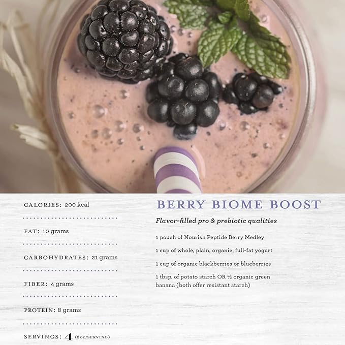 - Formula Meal Replacement: Organic, plant-based, whole-food peptide formula packed with the power of berries. There are 2 servings of fruits vegetables and over 100 berries in every pouch that is rich in polyphenols