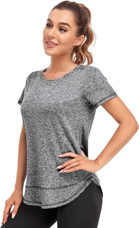 Women's Short Sleeve Workout Shirts Crewneck Sports Yoga Running Dry Fit Tops Side Split Tee