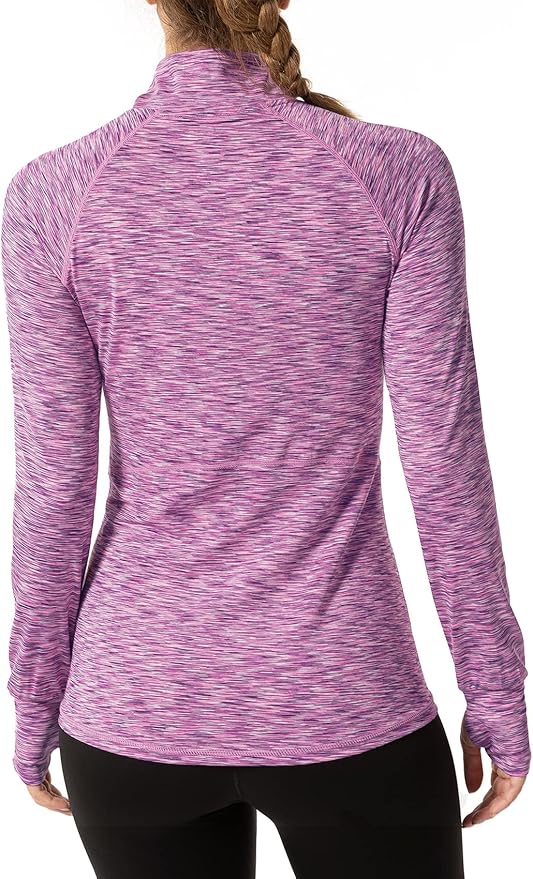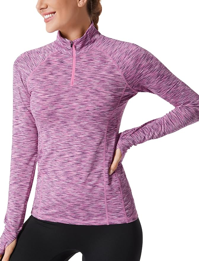 Zengjo Womens Quarter Zip Long Sleeve Workout Tops 1/4 Zip Running Pullover