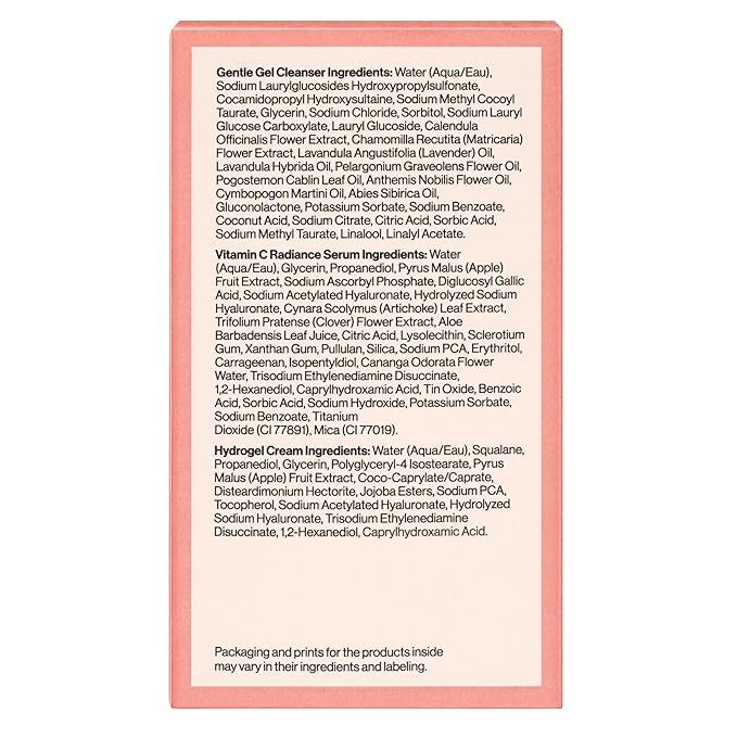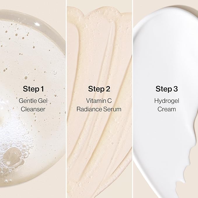 - TRAVEL SIZE: The perfect travel size regimen for achieving clean, hydrated, dewy looking skin on the daily. Works for all skin types and includes Hydrogel Cream (0.57 fl oz), Gentle Gel Cleanser (1.5 fl oz), and Vitamin C Radiance Serum (0.33 fl oz)