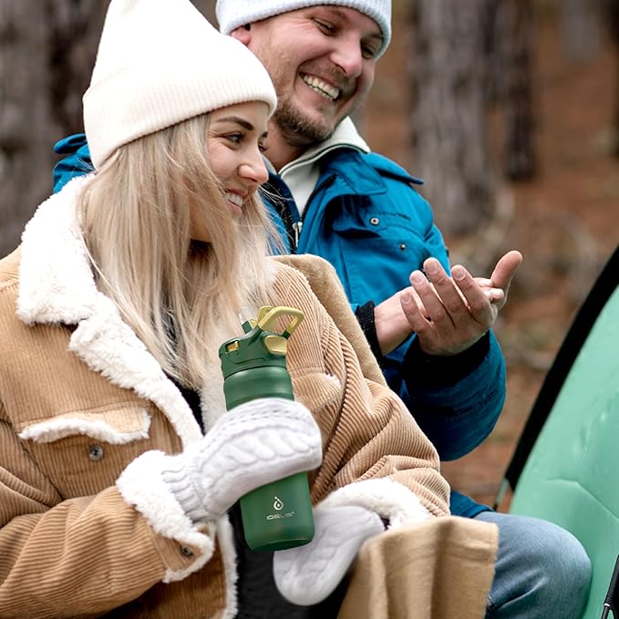 IDEUS Insulated Stainless Steel Water Bottle with 2 Leak-Proof Lids, Thermal Water Flask for Hiking Biking, 24oz, Green