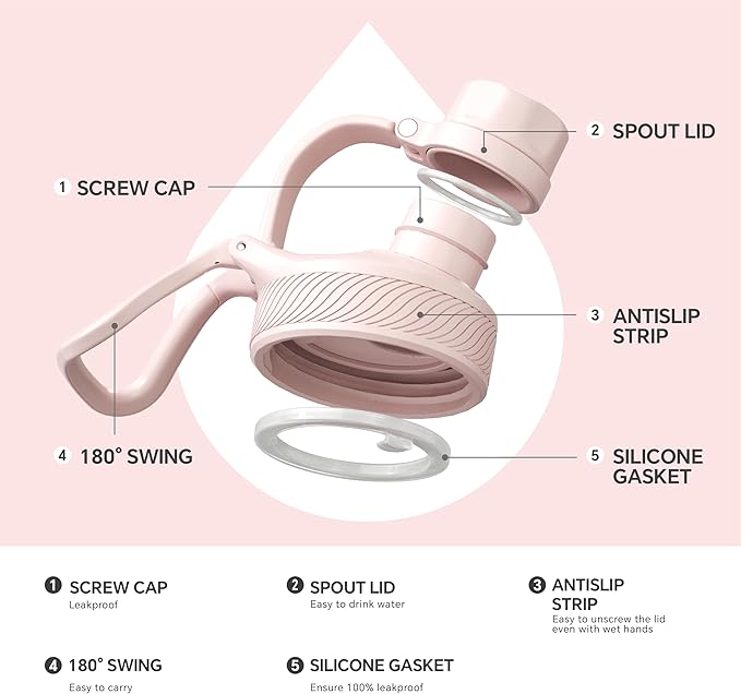 IDEUS Insulated Stainless Steel Water Bottle with 2 Leak-Proof Lids, Thermal Water Flask for Hiking Biking, 40oz, Light Pink