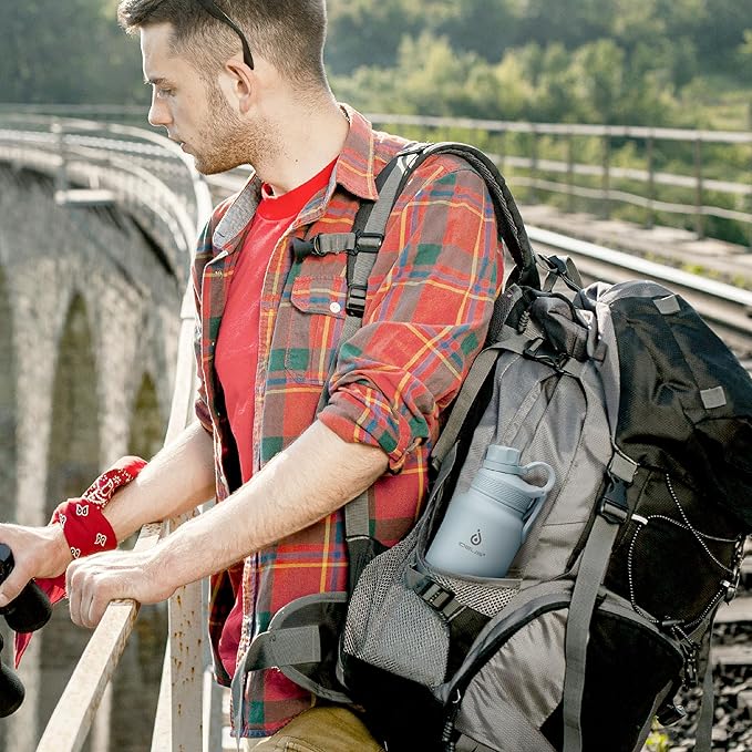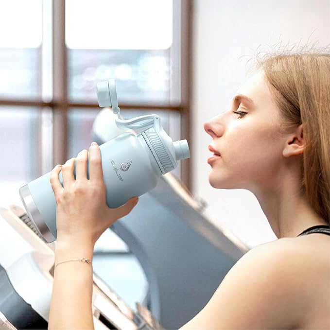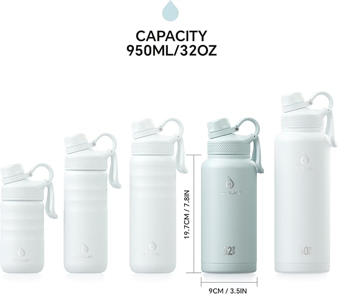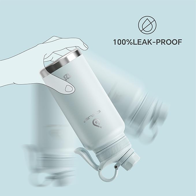 IDEUS Insulated Stainless Steel Water Bottle with 2 Leak-Proof Lids, Thermal Water Flask for Hiking Biking, 32oz, Light Blue