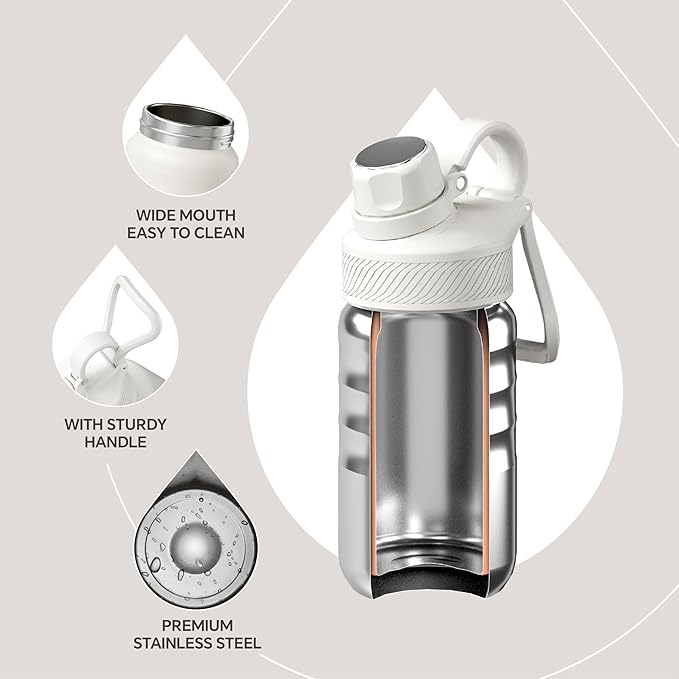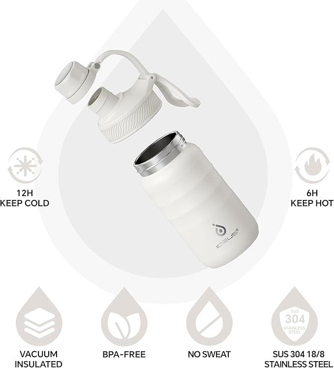 - 【Vacuum Insulation】 - IDEUS insulated water bottle is made from SUS304 18/8 stainless steel, 100% BPA-free. Advanced vacuum double wall insulation technology and can keep the temperature of beverages for up to 12 hours.