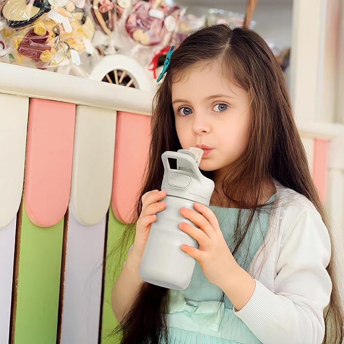 - 【Easy To Use】 - The stainless steel water bottles come with 2 types of lids -- one-touch pop-up straw with safety lock and a spout lid. Our sweetie bottie is lightweight and easy to carry, your sweetie can stay hydrated no matter where they go.