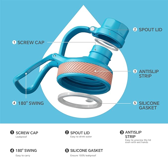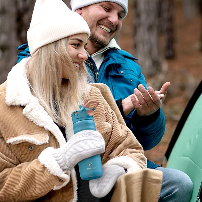 IDEUS Insulated Stainless Steel Water Bottle with 2 Leak-Proof Lids, Thermal Water Flask for Hiking Biking, 24oz, Blue Atoll