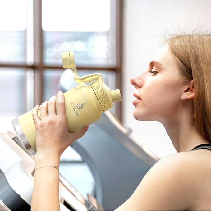 IDEUS Insulated Stainless Steel Water Bottle with 2 Leak-Proof Lids, Thermal Water Flask for Hiking Biking, 32oz, Light Yellow