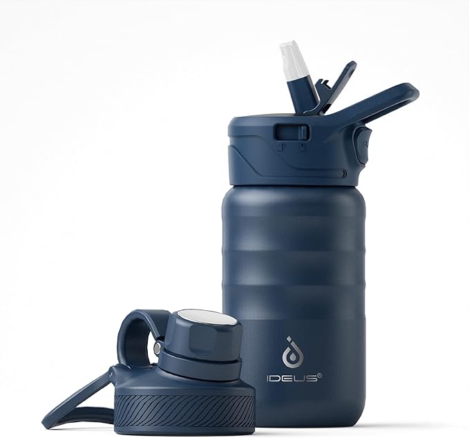 IDEUS Insulated Water Bottle 12oz, Stainless Steel Insulated Water Bottle For School, Insulated Bottles With Straws Leakproof, Vacuum Double Wall Water Bottles For Boys And Girls With 2 Lids, BPA Free