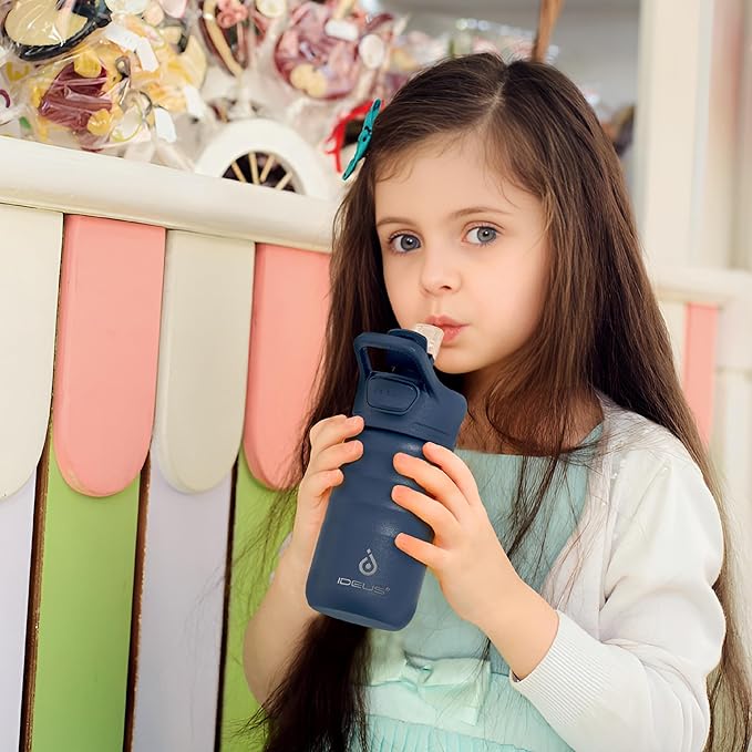 - 【Durable&Leakproof】 - IDEUS water bottle for school has a detachable silicone base pad that can protect the bottle from damage. This stainless steel water bottle is 100% leak-proof when lid closed. Ensures no spills or messes when your sweetie is on the go.