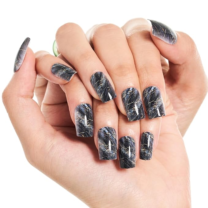 GLAMERMAID Ombre Press on Nails Medium Square, Fall Peacock Blue Marble Jelly Soft Gel Nails Square Fake Nail, Glossy Stick Glue 0n Nail Kit for Women, Reusable Stick on Acrylic Fake Nail Manicure Set