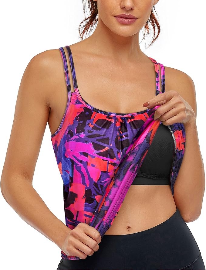 • √Built in Bra: Designed for low impact. Shelf bra tank tops built in removable pads gives a comfort feel, provides light support and coverage. You can also take off the pads and wear a sports bra under for high impact.