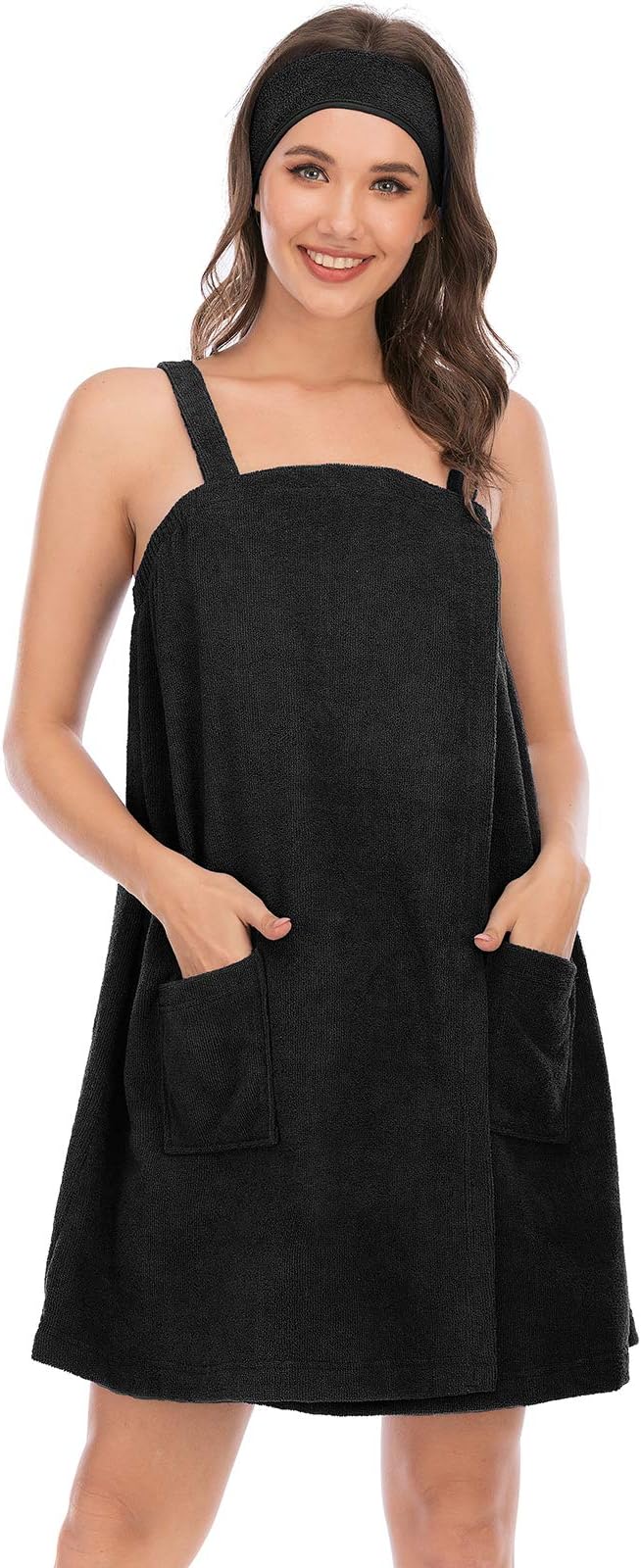• ♦ VERSATILE: Our Bath Towel robe designed with two big pockets, convenient to hold phone, makeup and other belongings. The wrap matching with Facial Headband, when you facial care can hold your hair back to wash face or stop liquid from dripping into eyes and on face.