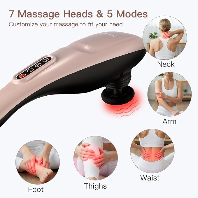 MEGAWISE Handheld Back Massager | Deep Tissue Percussion Massage for Back, Neck, Shoulders, Waist and Legs (Rose Gold)