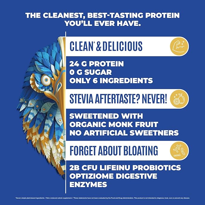 - Forget about Bloating. Our dairy-free formula features a special blend of Optiziome digestive enzymes and LifeinU probiotics to support digestion and optimal nutrient absorption. Falcon does not contain any inflammatory gums, an organic blend of protein powder for women and men.