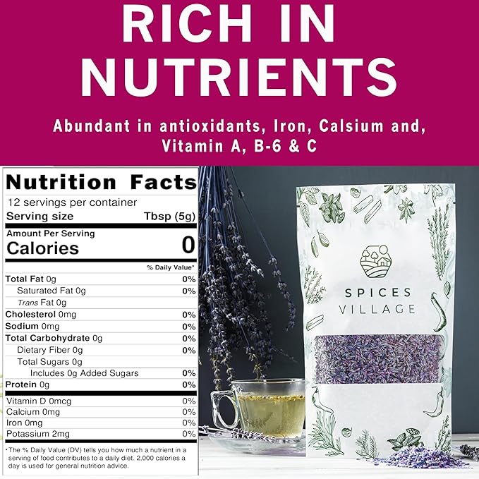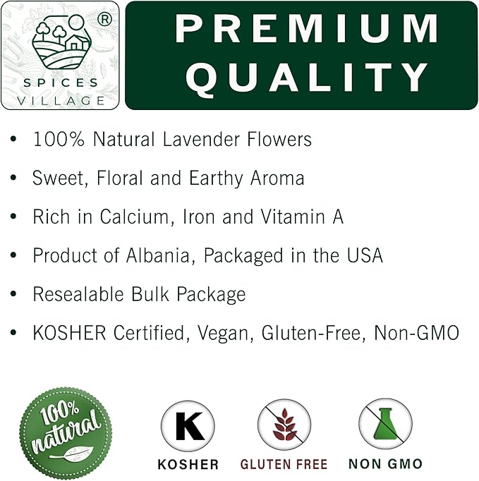 SPICES VILLAGE Lavender, Dried Lavender Buds, 2 oz, Herbal Tea, Potpourri, Wedding Confetti, Pillow - Kosher, Gluten Free, Vegan, Non GMO, Resealable Bulk Bag