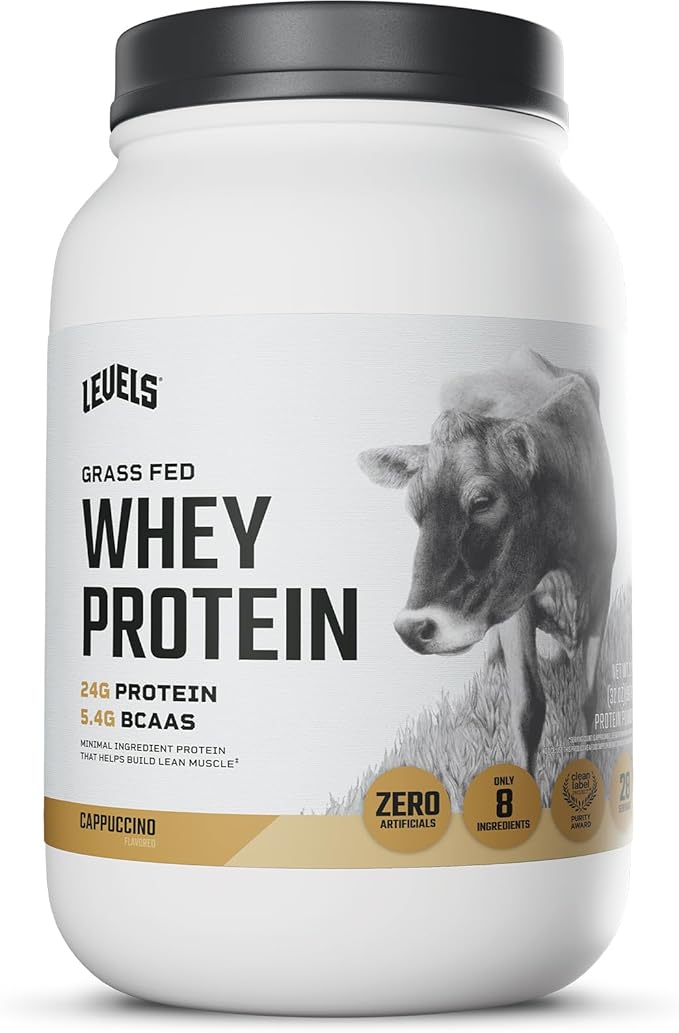 Levels Grass Fed Whey Protein Powder, No Artificials, 24G of Protein, Cappuccino, 2LB