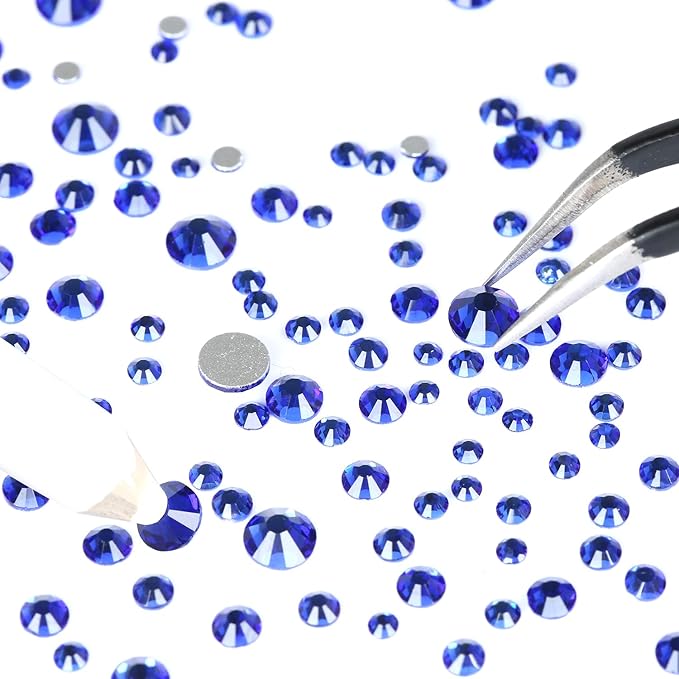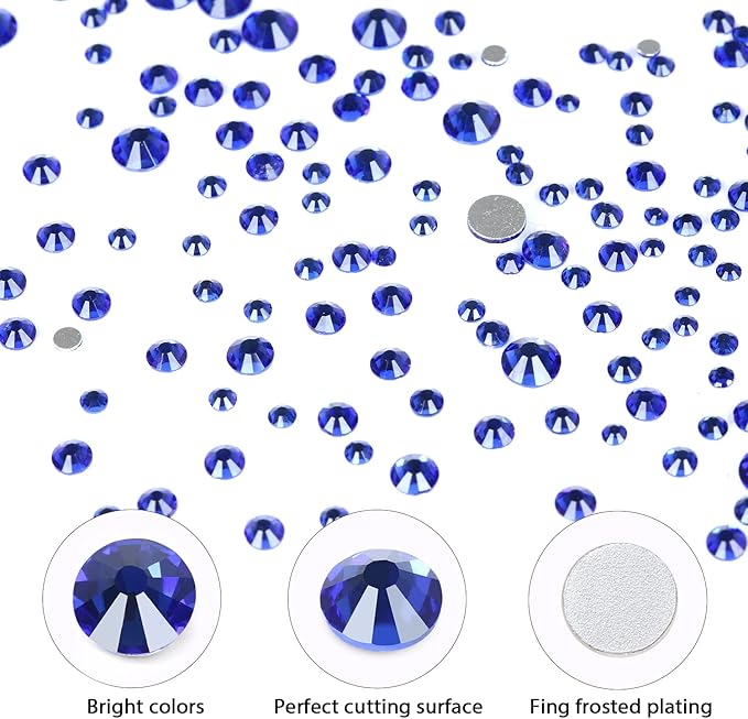 Nibiru 3992 Pieces Art Nail Rhinestones Flat Back Gems Round Crystal Rhinestones 6 Sizes with Pick Up Tweezer Blue