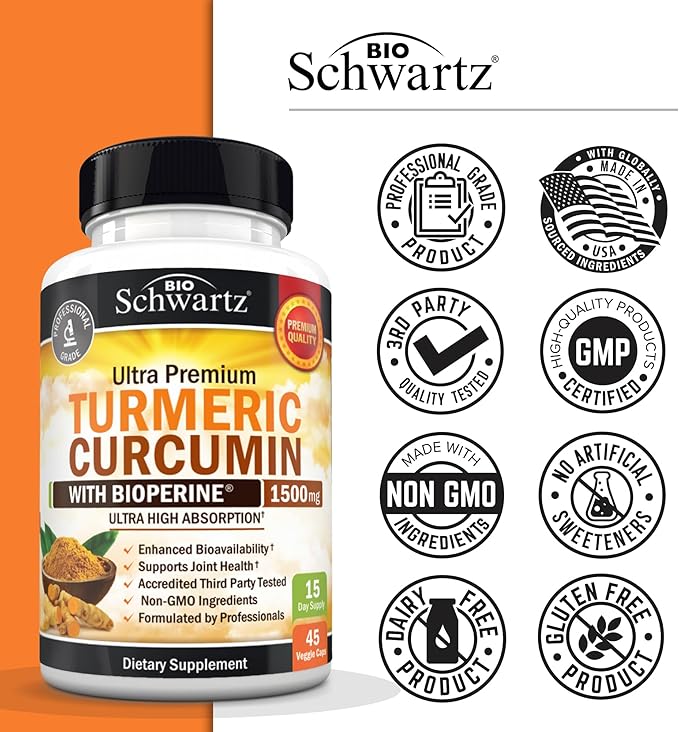 - Proven Benefits: Feel the synergistic relief of our turmeric black pepper supplement made with high strength turmeric curcumin 1500mg and BioPerine that may increase absorption by up to 2000%