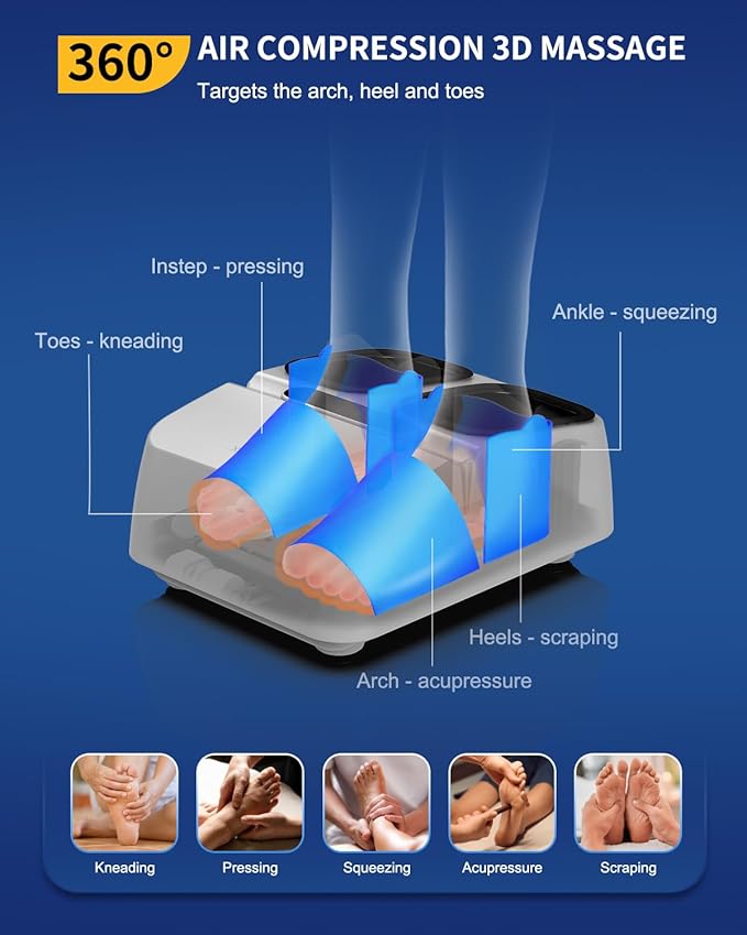 MOUNTRAX Foot Massager Machine with Heat, Foot Massager for Plantar Fasciitis, Neuropathy Pain, Shiatsu Foot Massager with Remote, Fits Feet Up to Men Size 12 (White)