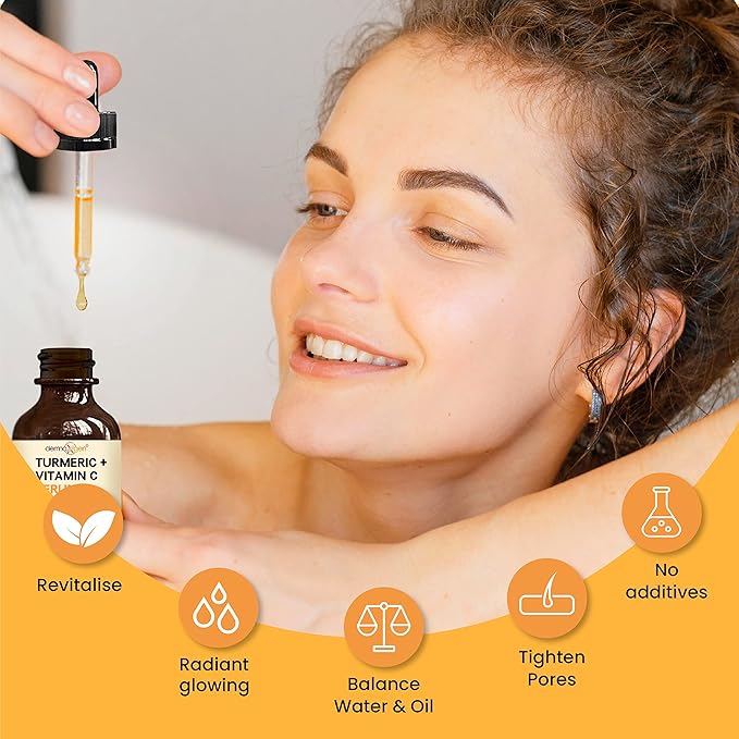 - Powerful Antioxidant Properties: Fight signs of ageing with our antioxidant-rich turmeric and vitamin C serum. Restore elasticity, reduce fine lines, and prevent dark spots, dullness, and premature ageing. Regular use helps protect your skin from environmental stressors.