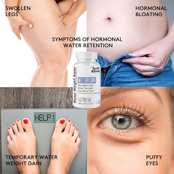 Youth & Tonic Water Weight Away – Natural Diuretic for Swelling, Belly Bloating & Fluid Retention – Herbal Water Pills for Women & Men, 90 Capsules