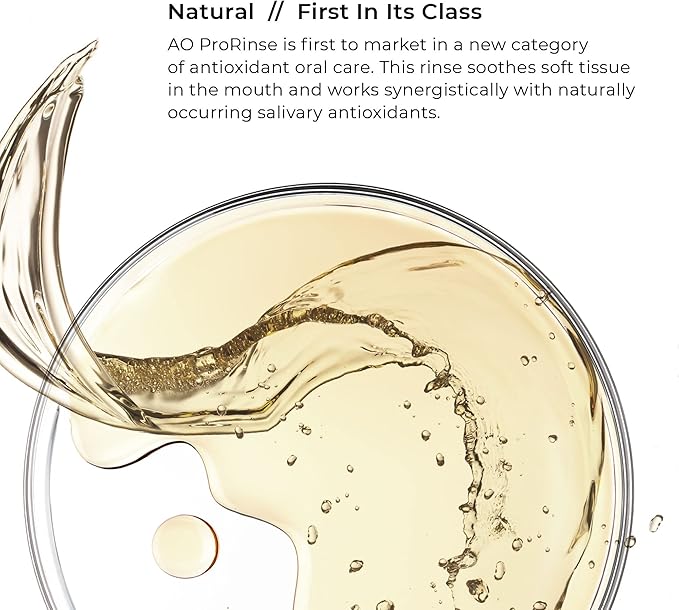 - FIRST IN ITS CLASS - AO ProRinse oral wash is first in a new category of antioxidant oral care and works synergistically with naturally occurring salivary antioxidants. For best results, use with AO ProToothpaste and AO ProVantage Dental Gel