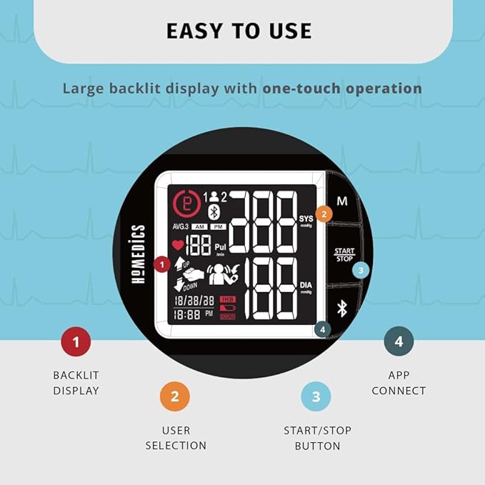 - Ultra Portable: Bluetooth wireless technology allows you to share data to your phone using the HoMedics Health App; easily track and share your readings; use on the go with 2 included AAA batteries