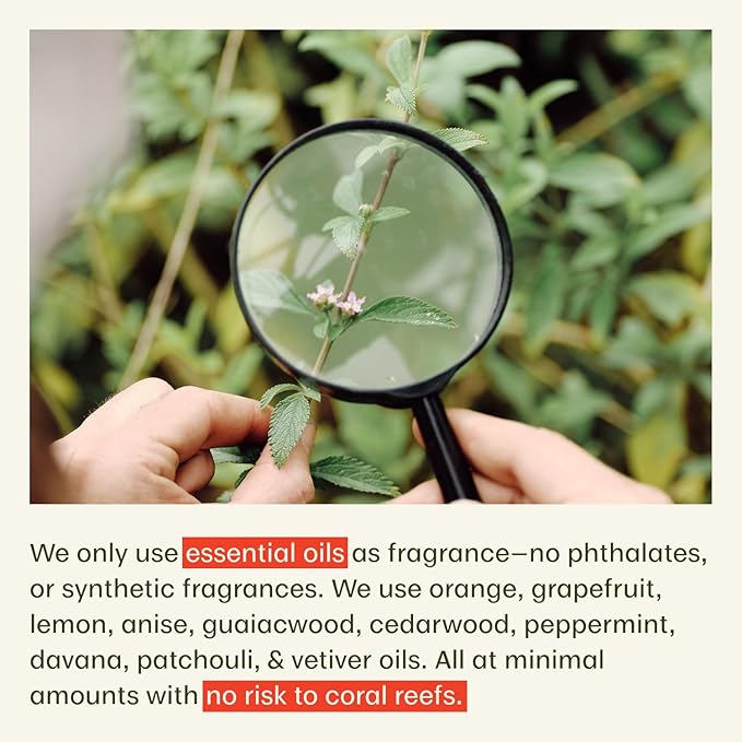 - EFFECTIVE HEALTHY INGREDIENTS – No chemical sunscreen filters, benzene free, cruelty-free, vegan, PABA-free, GMO-free, paraben-free, no synthetic colors or unhealthy ingredients. No synthetic fragrances added, only a subtle citric scent from natural essential oils.