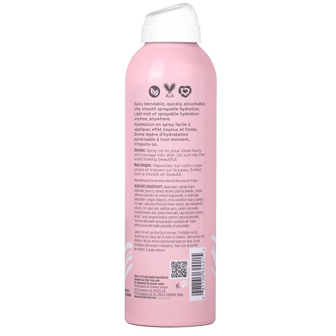 - INNOVATIVE SPRAY LOTION: This milky body moisturizer comes in a convenient spray form, making full-body hydration fast and easy. The fine non-aerosol mist absorbs in seconds, so you can spritz and smooth on lotion without any heavy rubbing. It’s perfect for those “lazy girl” skincare days when you want quick, even coverage.