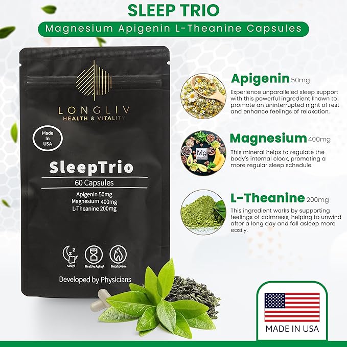 - Innovative Supplement: NEW FORMULATION with magnesium bis-glycinate. Unlike any other supplement on the market, the LongLiv Heath and Vitality magnesium bis-glycinate, L-theanine, apigenin supplement features 3 active ingredients that work together to promote wellness and sleep health.