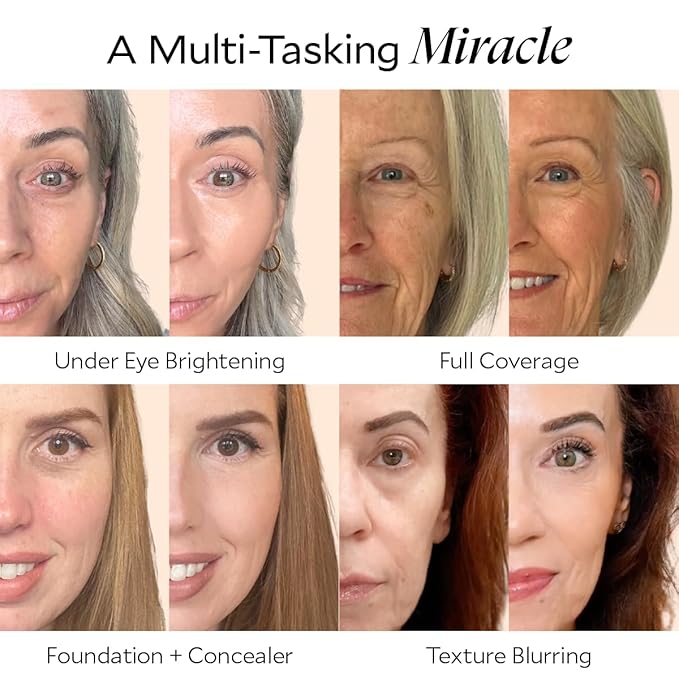 - 2-In-1 Concealer - The only concealer designed for women over 40 that combines full makeup coverage with anti-aging skincare benefits. Offers all-day wear without caking or settling into fine lines. High-quality skincare ingredients visibly reduce signs of aging, promoting firmer, healthier, and brighter-looking skin over time.