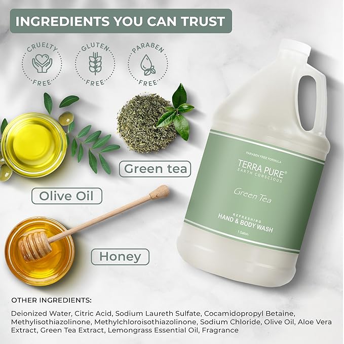 Terra Pure Hotel Hand & Body Wash Soap | Four Gallons | Designed to Refill Soap Dispensers (Set of 4)