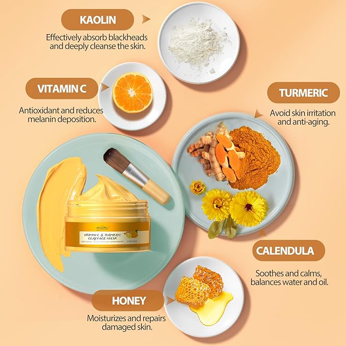 - DEEP CLEANING: Our vitamin C clay mask is formulated with kaolin, the texture is light and easy to apply. Which can effectively absorb oil and dirt from the deep of the skin, deeply cleanse the skin to avoid the formation of blackheads and acne. Say goodbye to stubborn blackheads and acne, the skin is brighten and shiny.