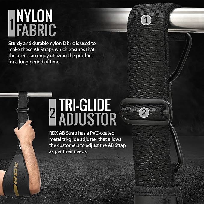 - DISCOVER THE NEOPRENE ADVANTAGE – Engage in extended ab training sessions without discomfort, thanks to the thoughtful design of the RDX workout hanging arm straps. Beneath the sturdy Maya Hide leather, you'll find a soft 6mm inner neoprene padding, offering a cushioned and comfortable feel. This padding not only prevents the pull up straps from digging into the underside of your arms but also allows you to concentrate solely on your ab workouts, eliminating distractions caused by discomfort.