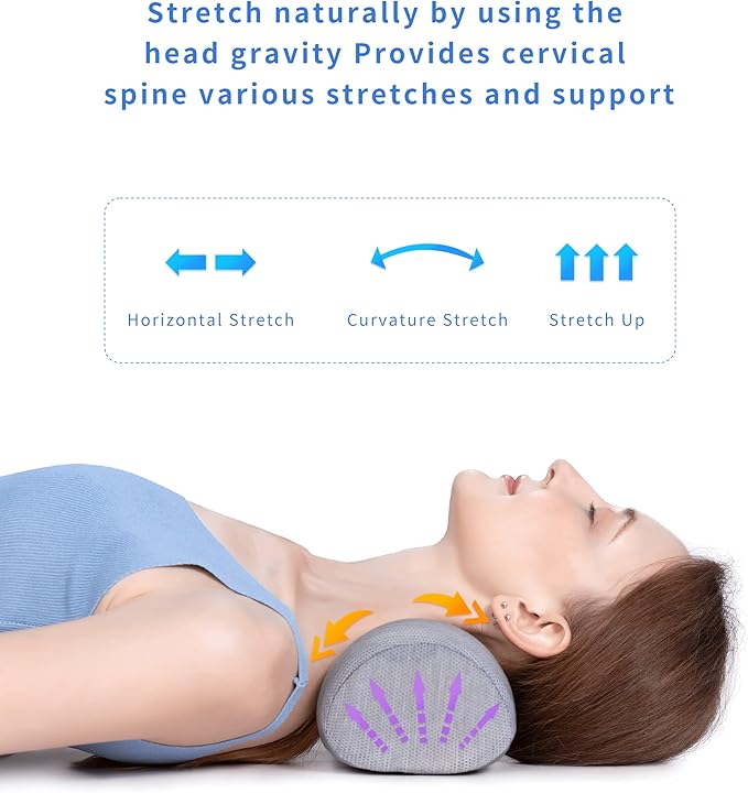 - [FSA & HSA Eligible,Relief neck pain in just 10 minutes]Our cervical spine curve design matches the cervical spine, offering vertical, horizontal support, and curvature stretch for neck traction. This positions the head to reduce spinal pressure, support the cervical spine, and help the C-shaped curve of the neck.