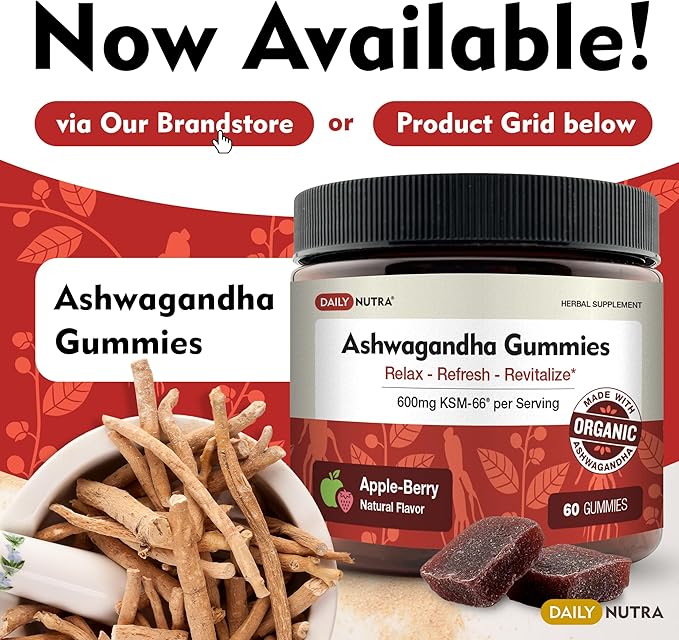 DailyNutra KSM-66 Ashwagandha 600mg Organic Root Extract - High Potency Supplement with 5% Withanolides | Relieves Tiredness, Supports Relaxation, Focus, Energy, & Muscle Growth (60 Capsules)
