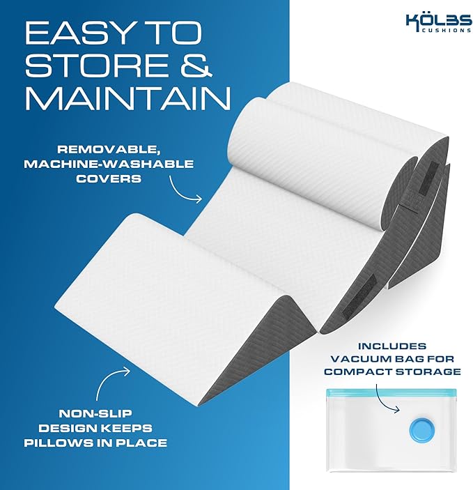 - Ergonomic wedge pillow for head and back support: Designed to provide gentle elevation and support, the Kolbs Wedge Pillow helps reduce discomfort from acid reflux, GERD, and post-surgery recovery while promoting better posture and breathing. Headboard pillow for elevation in comfort. Excellent sleep apnea pillow