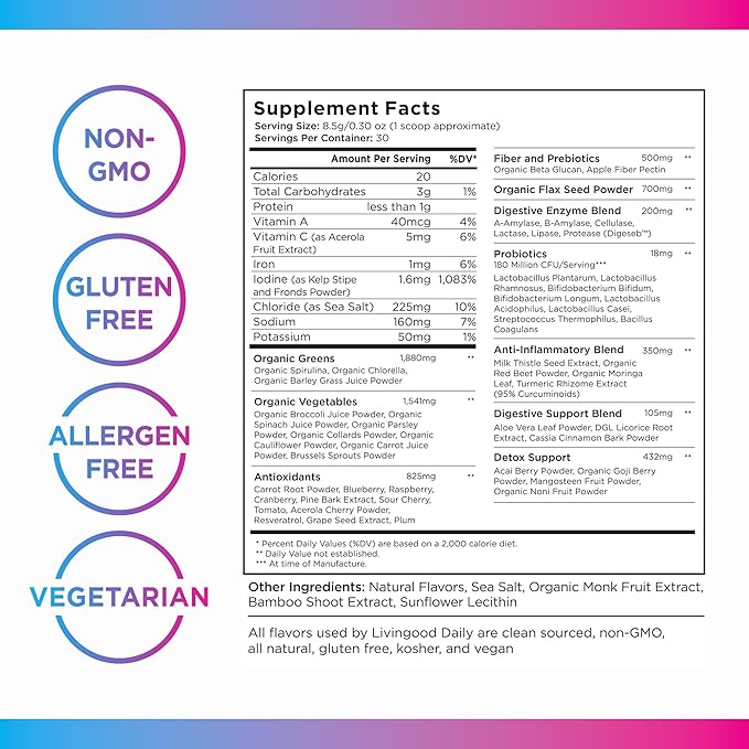 - CLEAN LABEL AND EASY TO USE: Just mix one scoop into 12–24 oz of water, once or twice per day. This greens powder is non GMO, gluten free, allergen free, and vegetarian, making it a flexible fit for a wide range of dietary needs and wellness routines. No blender required.
