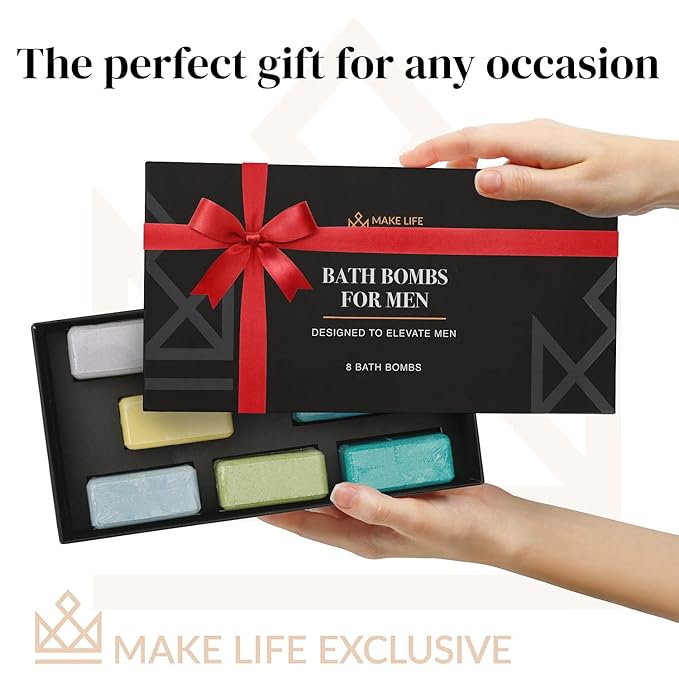 - ๐MAKE LIFE EXCLUSIVE GUARNTEE! - Put your mind at ease with our 1 year money back guarantee! These bath bombs have been tried, tested and voted by men, for men. With these scents, we are confident that everyone will enjoy this aromatic experience!