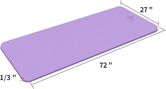 - THICK AND LARGE YOGA MATS:72" x27" x1/3"Th;includes a carrying sling .Extra thick TPE mat provides extra support, shock-absorption, and comfort.