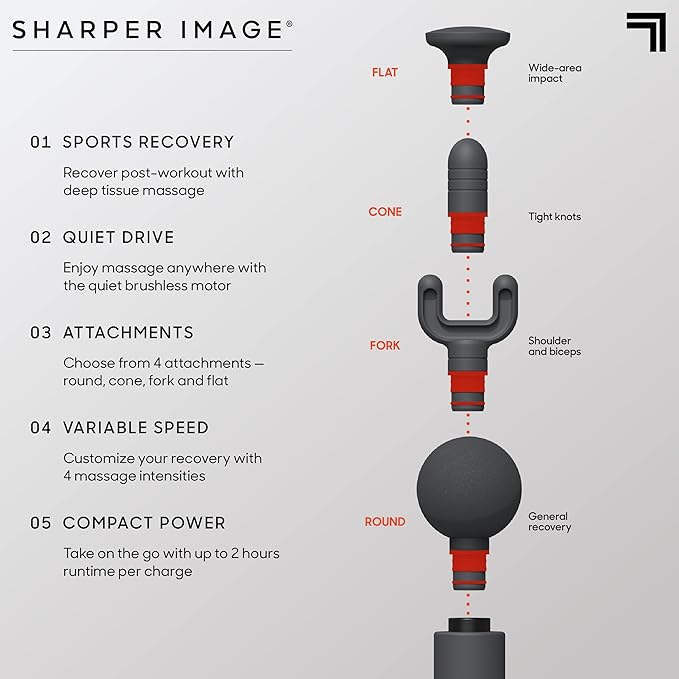 - ✔ PROFESSIONAL-GRADE RELIEF: Experience the power of deep-tissue percussion that feels like a session from a professional therapist. The Sharper Image Powerboost Move targets sore muscles, cramps, pain, and tension for a rejuvenating massage experience.