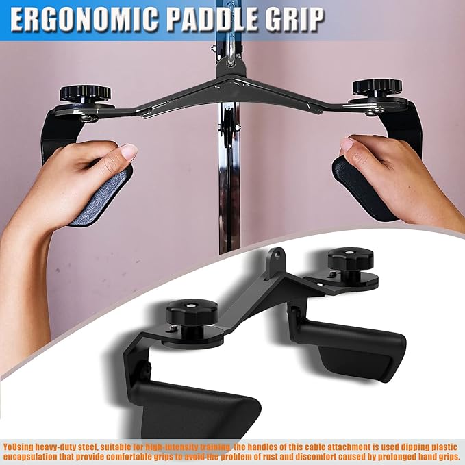 - 【Build Muscles Effectively】With our cable machine accessories, you can train your muscles from multiple angles. The ergonomic paddle grip is perfect for upper back and chest workout.