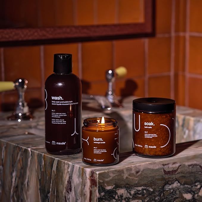 Maude Soak No. 1 - Nourishing Mineral Bath Salts - Hand-Harvested Dead Sea Salt with Magnesium & Potassium Chloride - Soften & Rejuvenate Skin - Notes of Amber, Cedar Leaf & Clove (8 oz)