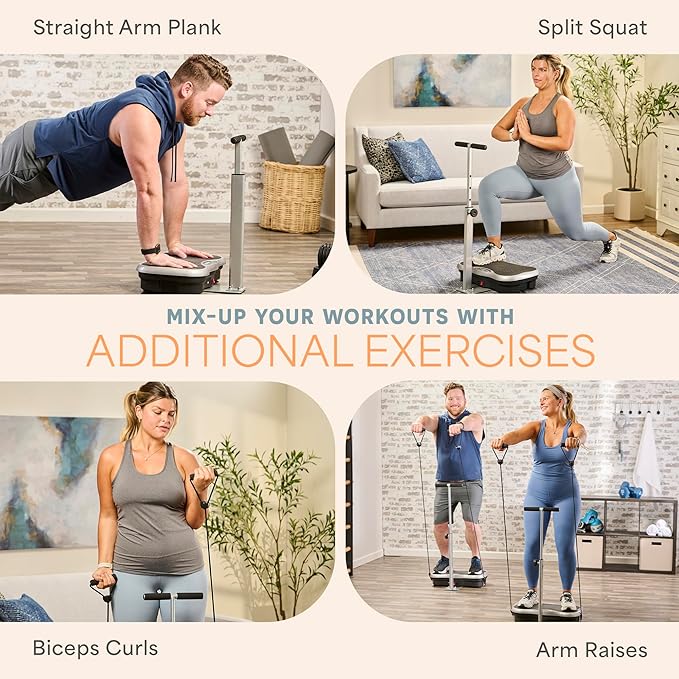 Lifepro TrimLite Vibration Plate Exercise Machine with Handlebars – Whole Body Vibration Platform for Lymphatic Drainage & Weight Loss – 99 Speed Levels, Bluetooth Speaker, Resistance Bands & Remote