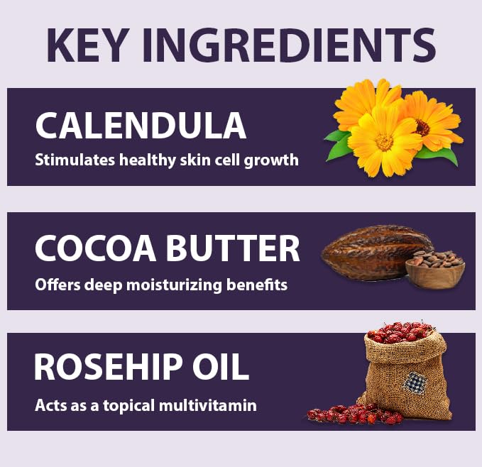 - BOTANICAL INGREDIENTS: We’ve made sure to pick top-quality botanical ingredients to create this nourishing moisturizer. The combination of Calendula, Arnica & Rosehip oil creates a soothing feeling and can help in healing damaged skin. Cocoa butter helps in making this moisturizing cream glide right onto your skin, absorb easily, and instantly make your skin feel silky and smooth.
