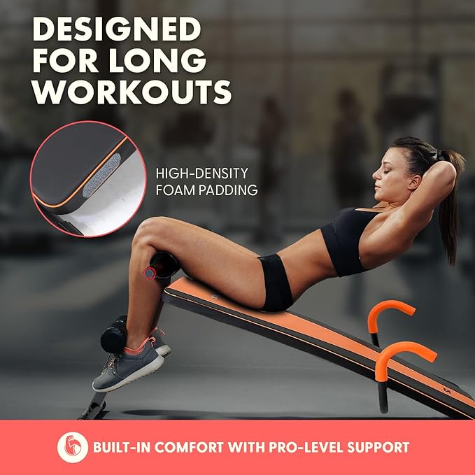 - ERGONOMIC SIT-UP BENCH DESIGN: With anti-skid handle and soft foam padding. The perfect abs bench for targeting all core muscles with each sit-up.