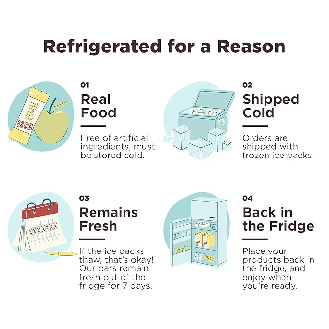 - REFRIGERATED FOR A REASON: Delicious nut butter bar with nothing artificial that is best kept refrigerated for optimal taste and texture but still perfectly fresh out of the fridge for as long as one week; ideal on-the-go, between-meal bars