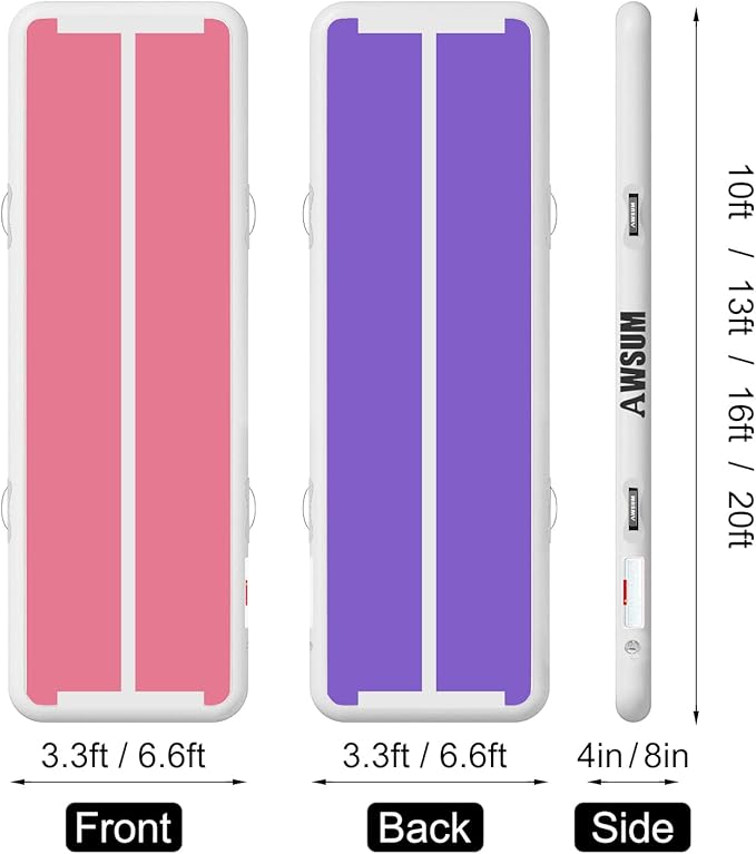 AWSUM Inflatable Air Gymnastics Mat 10ft/13ft/16ft/20ft/23ft Training mat 4/8 inches Thick tumbling mat with Electric Pump for Home/Gym/Outdoor