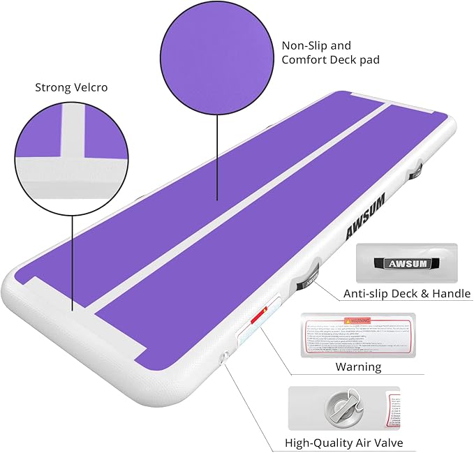 - Professional Tumbling Mat: AWSUM Air mats is made of high-quality PVC tarpaulin. All seams are made by handwork. Gymnastic mat Outer layer of mat is made of double-layer waterproof tarpaulin, better water-resistance. Tumble mat Inside is made of V-drop stitch technology, better flexibility