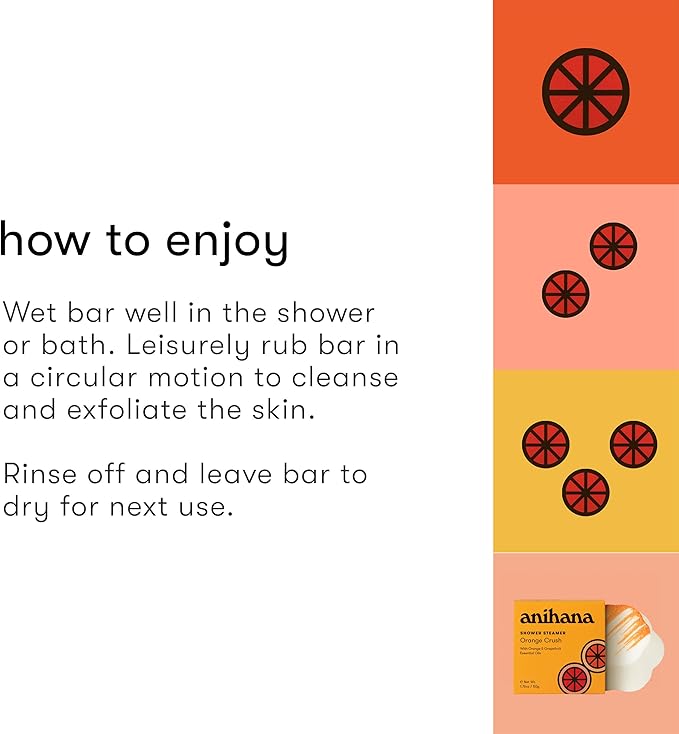 - BREATHE IN & ENJOY: Transform shower time into the ultimate spa-like experience infused with the aromatherapy benefits of orange and grapefruit essential oils